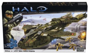 Mega Bloks creates Halo-themes versions of their popular building toy. In fact, we’re so nuts about these toys that we’ve got three (yes, three) Mega Bloks UNSC Pelicans floating around the office here. Well, not literally floating as they should be, but you get the idea.