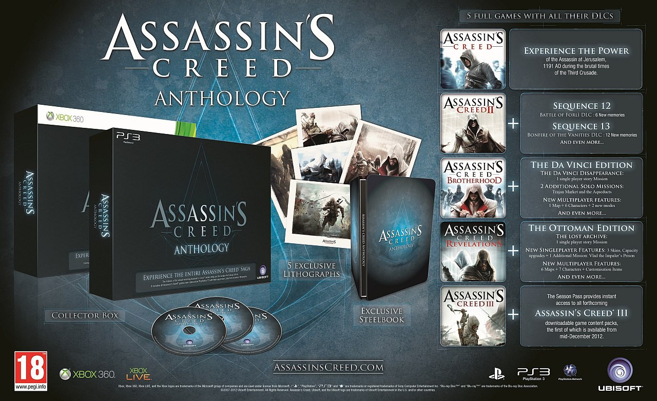 The collection is priced at €150, or about $199 and an Amazon exclusive. The price seems a bit steep to us, even when you consider that the $59 Assassin’s Creed III is included. We’d love to see this collection at $99, perhaps even $129, but at two hundred bucks, it just doesn’t make sense. Considering the people who are going to pick up the anthology likely already have all the games, this set isn’t about completing a collection, but rather having the cool goodies that come along with it. And frankly, there isn’t much here worth picking up unless you’ve never played the games before.