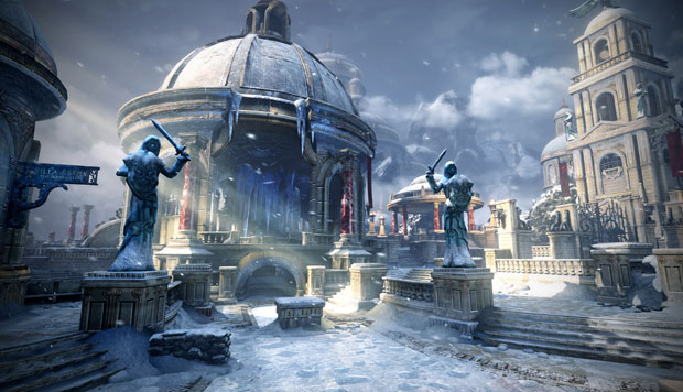 The two new maps are called Capitol and Haven (same name as the multiplayer map from Halo 4, but not the same map, of course), and we get a sneak peek at Haven on Maxim’s website. The map is a wintery monument that, ironically enough, has the shape of the top of the US Capitol Building, though this one is partially destroyed. It also brings some much needed blue tones into the Gears franchise where we’re usually treated to a much more red and yellow palette.