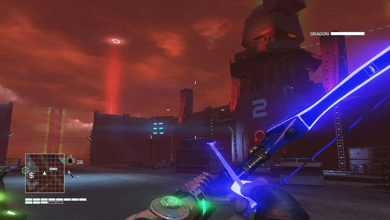 When you finally come face-to-face with one of the game’s gargantuan titular Blood Dragons however, you’ll no doubt be thankful for Rex’s increased combat capabilities! As you navigate the island, and during set points within certain story missions, you may run into Blood Dragons, which can spawn in the island overworld at random. Blood Dragons are immensely powerful, able to instantly destroy your enemies, and able to quickly flatten Rex if you try to carelessly engage them directly! It is possible to kill them, particularly by shooting at a purple weak spot on their underbellies, but it takes time and more than a few upgrades before Rex will stand a chance against these intimidating foes. In the post-game, when you have all of the best weapons and upgrades, killing Blood Dragons isn’t so big a deal anymore, even on Hard difficulty, but beforehand, they’re a force to be reckoned with!