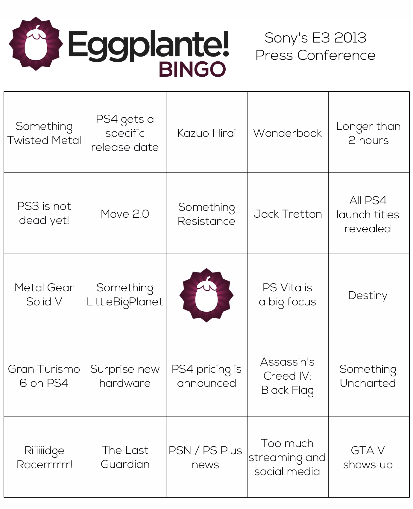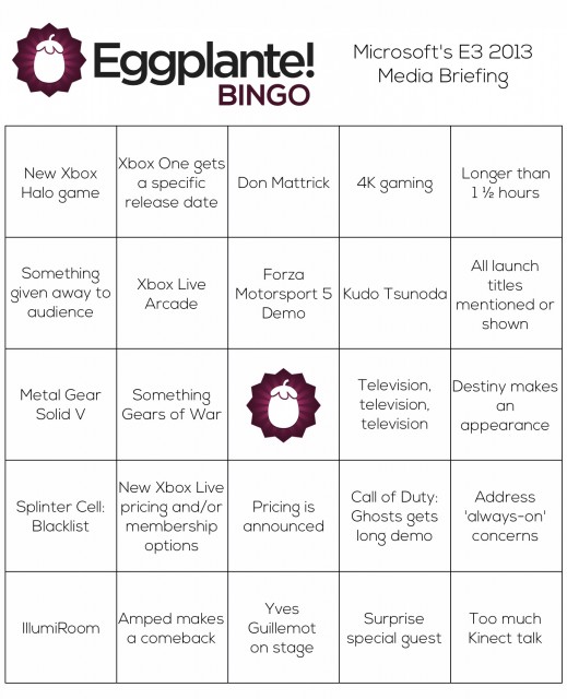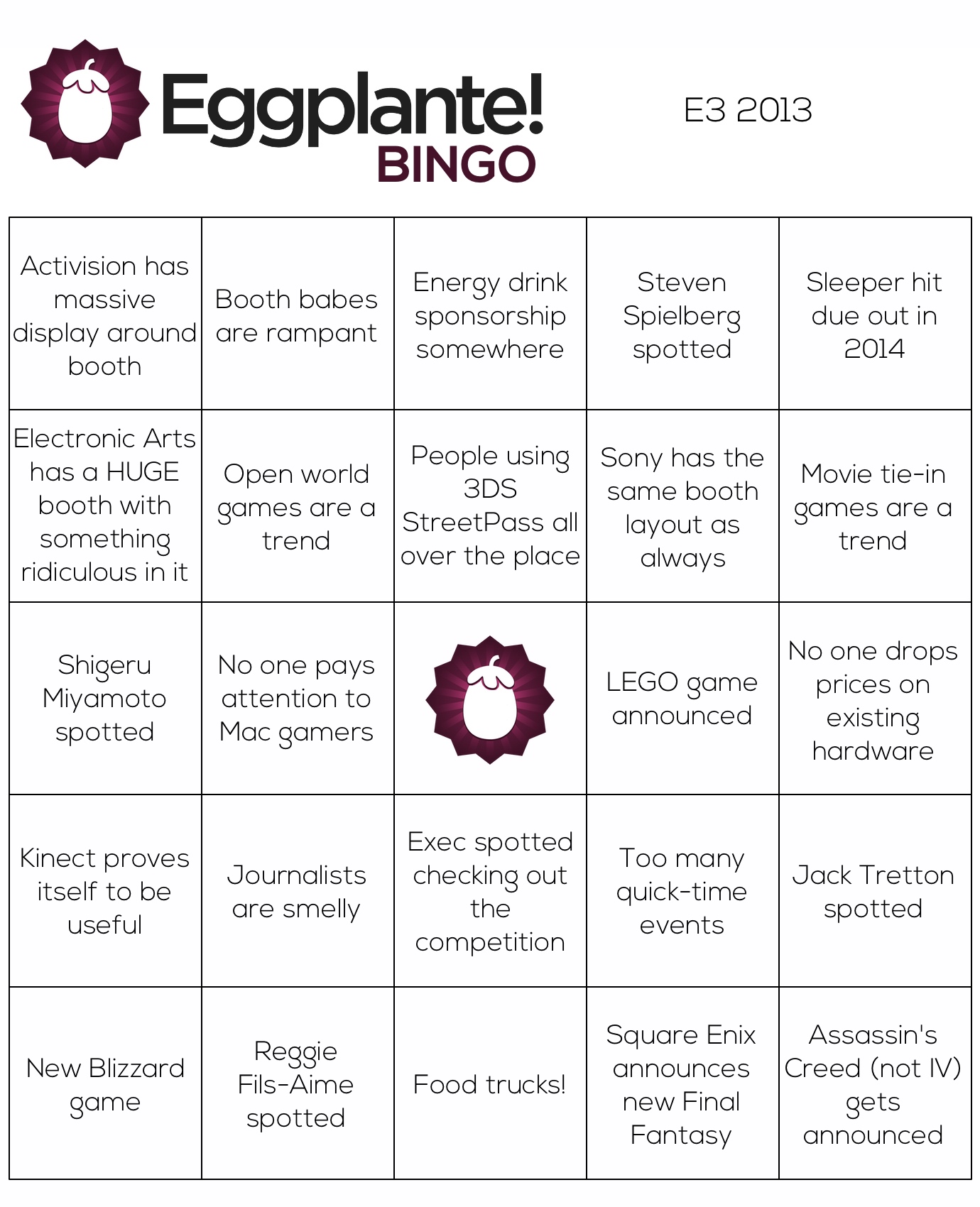 As we get to one day away from E3 2013, we wanted to bring to you a new tradition of Eggplante: BINGO.