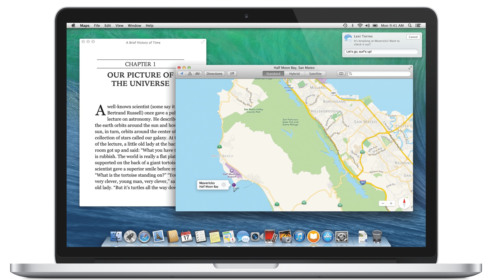 The update to their desktop and laptop offering, OS X, included a new naming system that highlights the areas around the company’s home state of California. The first version of this release is OS X 10.9 Mavericks, named for a surfing location off the coast of the Western State.
