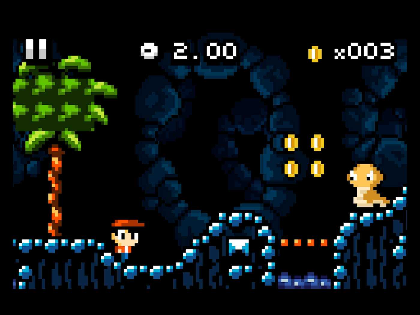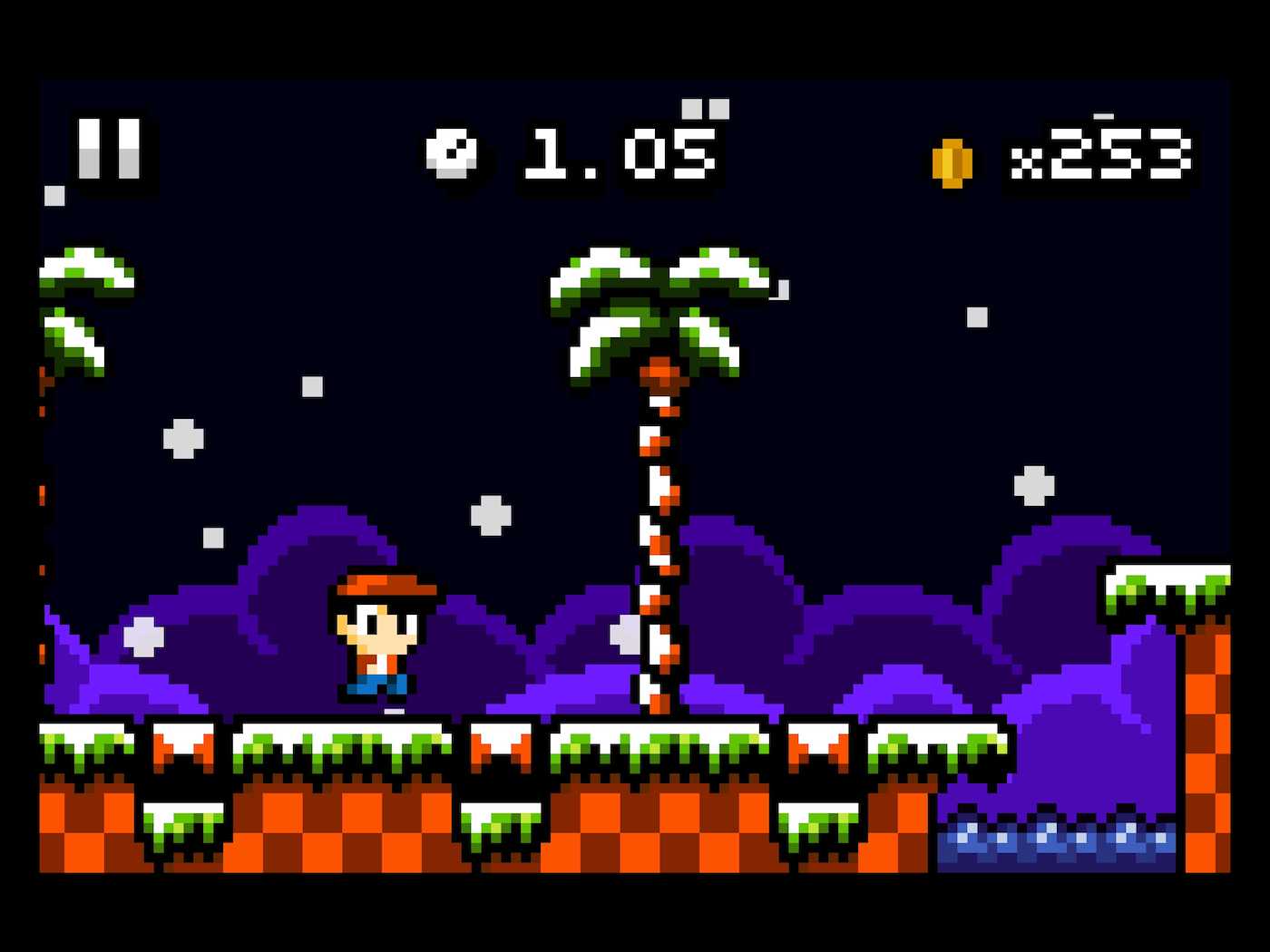 The game features Kid Tripp as he traverses some pretty beautifully-designed worlds, each based on a slightly different theme, such as open plains, ice, and water. The game takes the world concept from Mario and copies it almost exactly, but changes enough of everything else it borrows from to make it unique. It is very much a hodgepodge of retro games, with inspiration clearly drawn from the games lots of us grew up playing, but that’s not a bad thing.