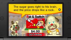 But there’s more, and here’s the best part! If you perform well in Bat & Switch, and this presumably applies to other minigames too, you’ll get unique items. How these are used is, when you want to buy a minigame from Rusty, he’ll give you a base price of your real 3DS eShop money, BUT, players can opt to haggle with him! If you offer Rusty the items you’ve earned by performing well in the minigames, on top of improving his mood by listening to his programs, likely about his former baseball exploits, there’s a chance that you can get Rusty to reduce the real-money price for new minigames from their base $4.00 price, each.