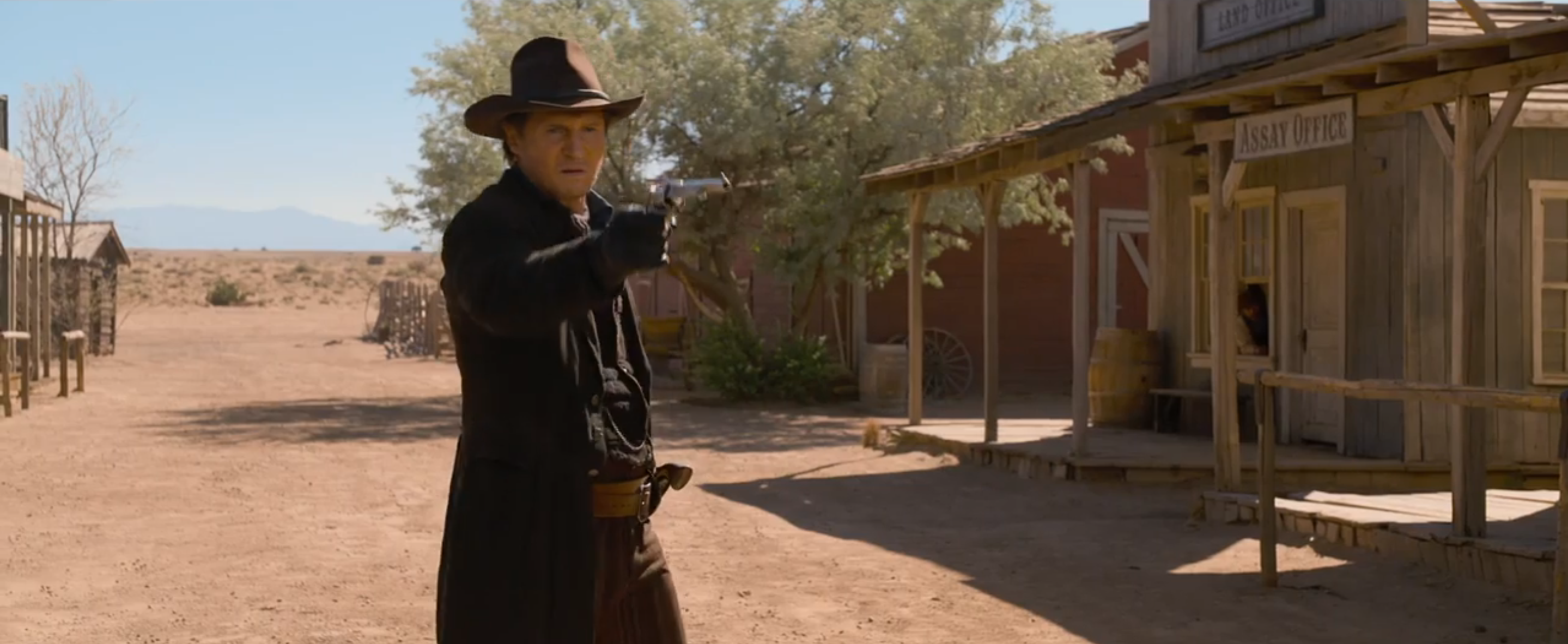 Unbeknownst to Stark however, Anna is actually married to one of the most notorious outlaws in the frontier, Clinch Leatherwood, played by Liam Neeson. Leatherwood ends up depositing Anna with one of his goons in Stark’s town of Old Stump, Arizona, vowing to return for her in just over a week’s time, so they can lay low after one of Clinch’s crimes, making for the other half of what pushes the surprisingly busy plot forward.