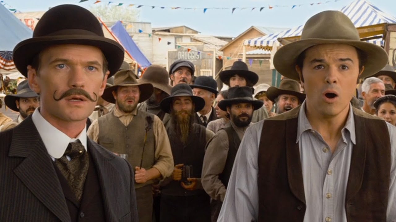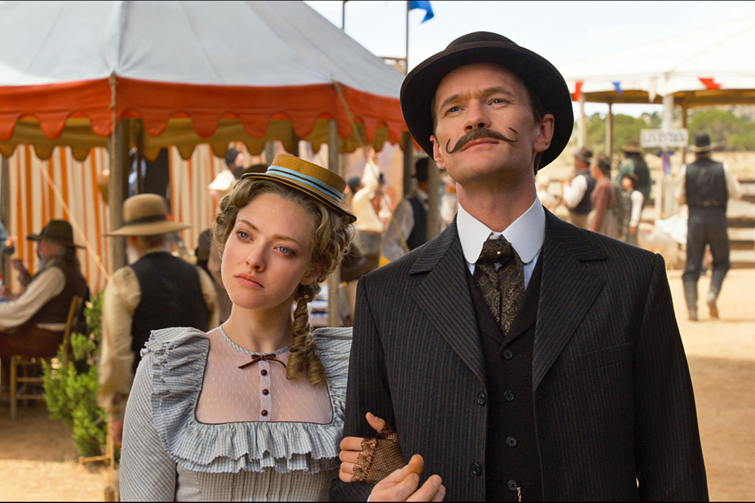 Amongst its large cast of personalities, A Million Ways to Die in the West stars lowly sheep farmer, Albert Stark, played by MacFarlane himself. A coward and a town laughingstock, Albert is shamed when he backs out of a duel, which also leads to him losing his girlfriend, Louise, played by Amanda Seyfried, to the town’s wealthy and snooty moustache vendor, Foy, played by Neil Patrick Harris.