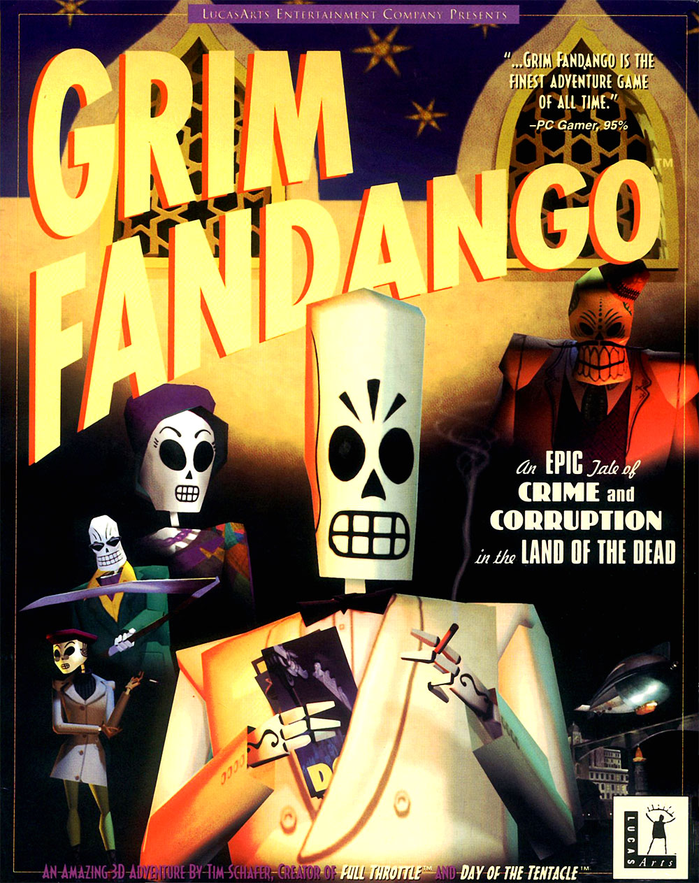 Despite its initial commercial failure as a PC exclusive in 1998, which was bad to the point of contributing to former developer, LucasArts abandoning development of original adventure games shortly before the 2000’s, Grim Fandango was very well received by game critics, and has remained a cult classic amongst PC adventure enthusiasts. The game combines Aztec death lore with noir, detective-style gameplay, and was directed by Double Fine boss, Tim Schafer, before he left LucasArts to form the Psychonauts and Brutal Legend developer.