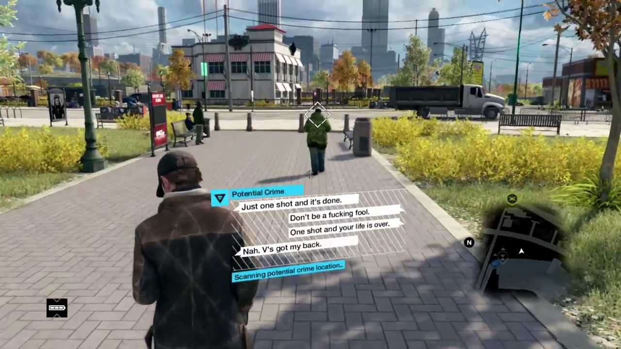 Even if you’d rather avoid missions, Watch Dogs offers some neat ways to unwind too. You can play chess in the park, shoot up aliens in an AR game, struggle to hit button prompts during drinking games, or enjoy a ‘Digital Trip’, which allows you to do things like stomp around Chicago in a giant spider tank. It sounds ridiculous, but it’s a great way to let loose and have some goofy fun, even if these side games don’t often carry any real rewards. It also helps the game world come to life with activities that can be as innocent as they can be deadly, helping Chicago feel that much more alive and active, even when you’re not doing missions.