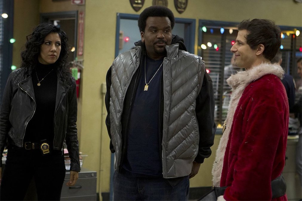 The resolution of Santiago finding a mistake in one of Holt’s old cases as the perfect Christmas gift was cool, especially since it elicited a nice moment of Holt praising Santiago, and admitting that he doesn’t like Christmas gifts because he has a distaste for brown-nosing. If anything though, the effort presented its own reward with another very funny flashback of a young upstart Holt detaining a serial arsonist, by declaring, “You’ve burned out… Dirtbag!” Young Holt is always welcome on this show. Always.