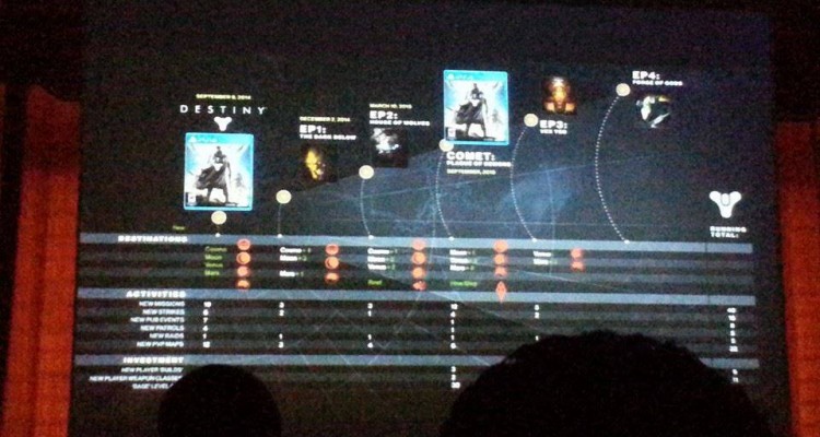 An image posted to Twitter in a subreddit claims to be a photograph leaked from an internal Bungie meeting detailing the future of Destiny‘s downloadable content.