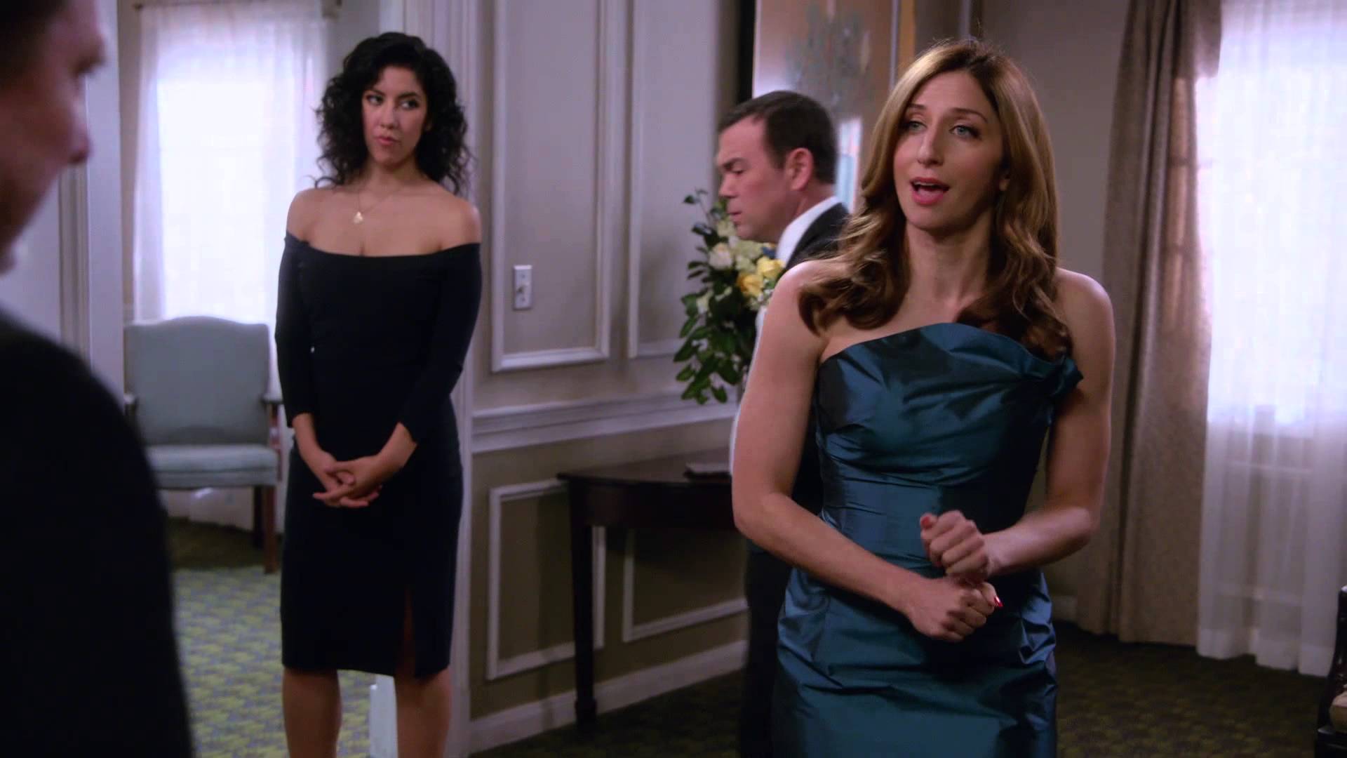 Even before the wedding properly begins, Peralta and Santiago are given a chance to get into trouble when Santiago spots an especially notorious counterfeiter that she has been trying to catch for a long while. Peralta and Santiago’s teamwork manage to get the guy arrested, but in the process, Peralta loses the ring he was supposed to hang on to for the wedding, forcing the two to dig through the garbage for it again. When they eventually find it, the ring ends up getting caught on Peralta’s finger, go figure.
