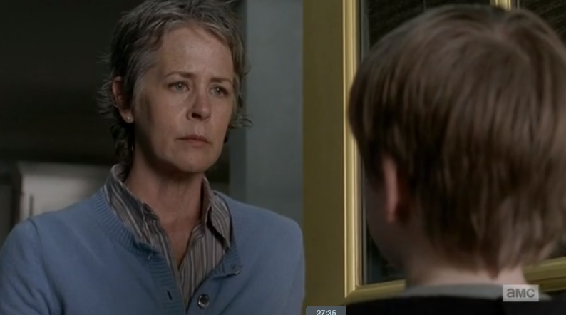 Lastly, Carol begrudgingly helps Sam learn to bake cookies, and potentially learns that Pete is abusing both Sam and Jess. She relays the news to Rick, though as with Gabriel, she has no evidence, beyond a gut feeling. This also feels a bit contrived, though it’s more acceptable in this case, since there’s the subtle implication that Carol wants a fight, and may just be looking for a reason to start one, so she can help the group take over Alexandria. While it’s not as blunt, Rick could be pondering this too, and Carol suggesting that he kill Pete could be the motivation he needs to enact his plot for Jess.