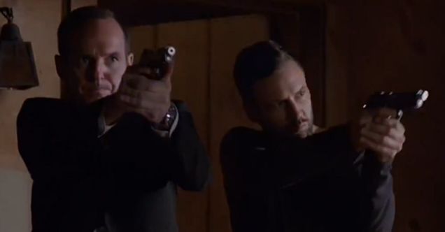 The episode gets off to a funny start, with Coulson trying to negotiate a ride with a used car salesman, only to have Hunter jack the guy’s own vehicle, forcing Coulson to ice him. It’s great to see that these two are such an entertaining double act, which helps to compensate for the lack of the ensemble that Agents of S.H.I.E.L.D. has accustomed its audience to.