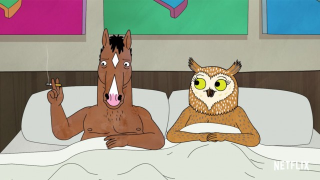 Another welcome tweak in Season Two is that BoJack himself is far more likable. I get that BoJack is supposed to be depressed and self-destructive, but Season One made him seem too irredeemable at times, and that made him impossible to root for, and thus impossible to invest in. Season Two fortunately makes BoJack a bit more stable and determined to better himself, particularly now that he spends the season filming his dream role in a movie inspired by famed race horse, Secretariat. He’s still often miserable and still clearly struggles with his depression and rotten upbringing, but at least now he’s not going out of his way to be a dick, especially since Season Two does a better job at creating some influential consequences to BoJack’s bad behaviour, thanks to his autobiography from Season One taking off.