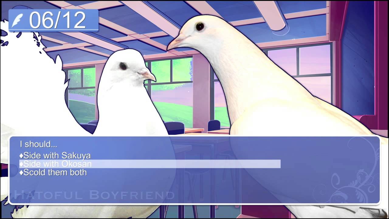 Hatoful Boyfriend is easy to fall in love with, even if, like its title heroine, it doesn’t outwardly stick out much beyond its initial weirdness. It just comes down to a question of whether you’re open to the possibility of falling in love with such an odd, but likable offering.