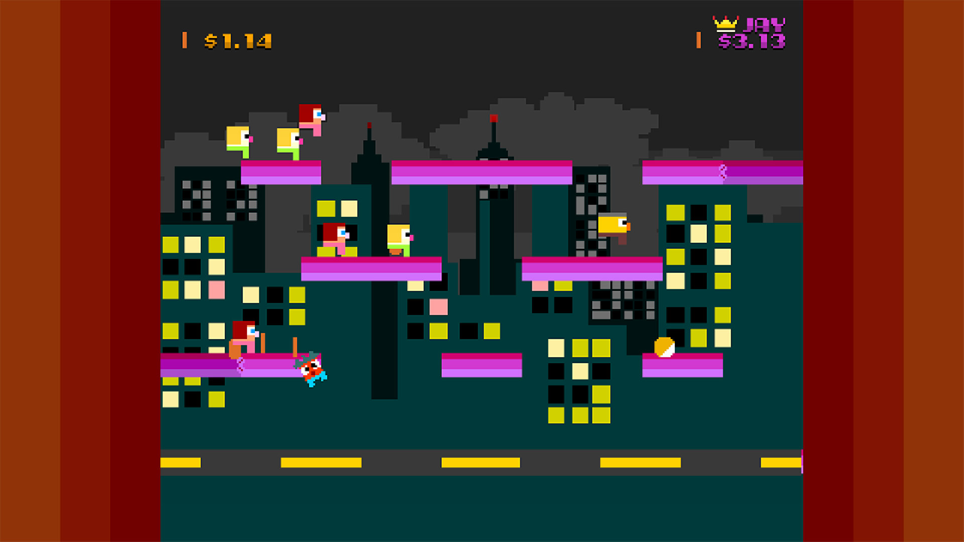 Every time you destroy an enemy however, they’ll drop a Penny, which Dave must collect to build up his money count, taking the place of the normal Score that you would find in an actual 80’s arcade game. Even as your score goes up by one painstaking penny at a time, you’ll find yourself eager to keep building it up. Every time you play, you might get one or two pennies more, and that’s enough to push you to see how far you can make it.