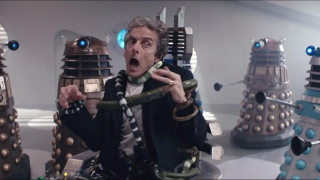 The scene only got better when Clara was forced to climb into a suit of Dalek armour by Missy as well. When the Dalek armour speaks Clara’s words, the viewer and Missy (though not Clara herself) see that some of them are automatically changed. When Clara tries to say her name for example, the armour simply says, “I am a Dalek.” When Clara tries to express any emotion, be it positive or negative, it simply comes out as, “Exterminate.” Emotions like anger and hatred also control the Dalek weaponry with telepathy, which is also how the armour moves. Finally, when Clara tries to say that someone is her friend or ally, the armour says, “You are an enemy of the Daleks.”