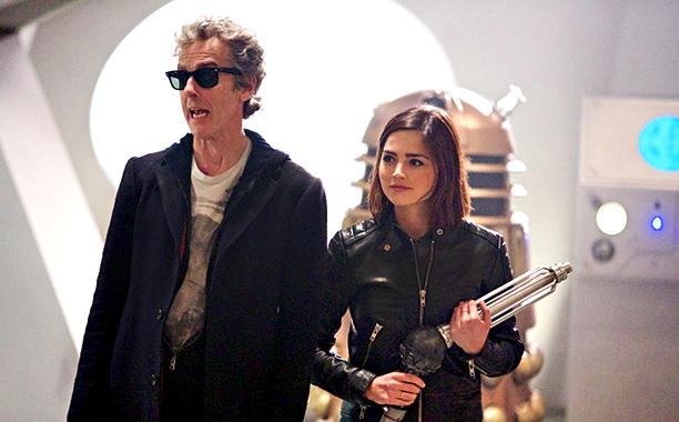 The Doctor then encounters the Dalek Clara, not being aware that Clara is inside the armour, with Missy claiming that it’s the Dalek who killed Clara, and The Doctor should take revenge. Clara tries to shout at The Doctor that it’s her, but it just keeps coming out that she is a Dalek. The Doctor actually prepares to kill Clara from within the armour, until one of her protests comes out as, “Mercy.” The Doctor claims that the Daleks should have no concept of mercy (yes, a Dalek did say, “Mercy” to River Song in Eleventh Doctor episode “The Big Bang”, but remember that The Doctor wasn’t present when this occurred), and when he tells the armour to open, he sees that Clara is inside. The Doctor angrily tells Missy to run, with Missy then trotting off, only to be surrounded by Daleks in another room. Before they can kill her however, she claims that she has a most clever idea, and that’s the last we see of her in this episode. Obviously, this is bound to spell trouble for The Doctor later on, but more Missy to look forward to is always a good thing!