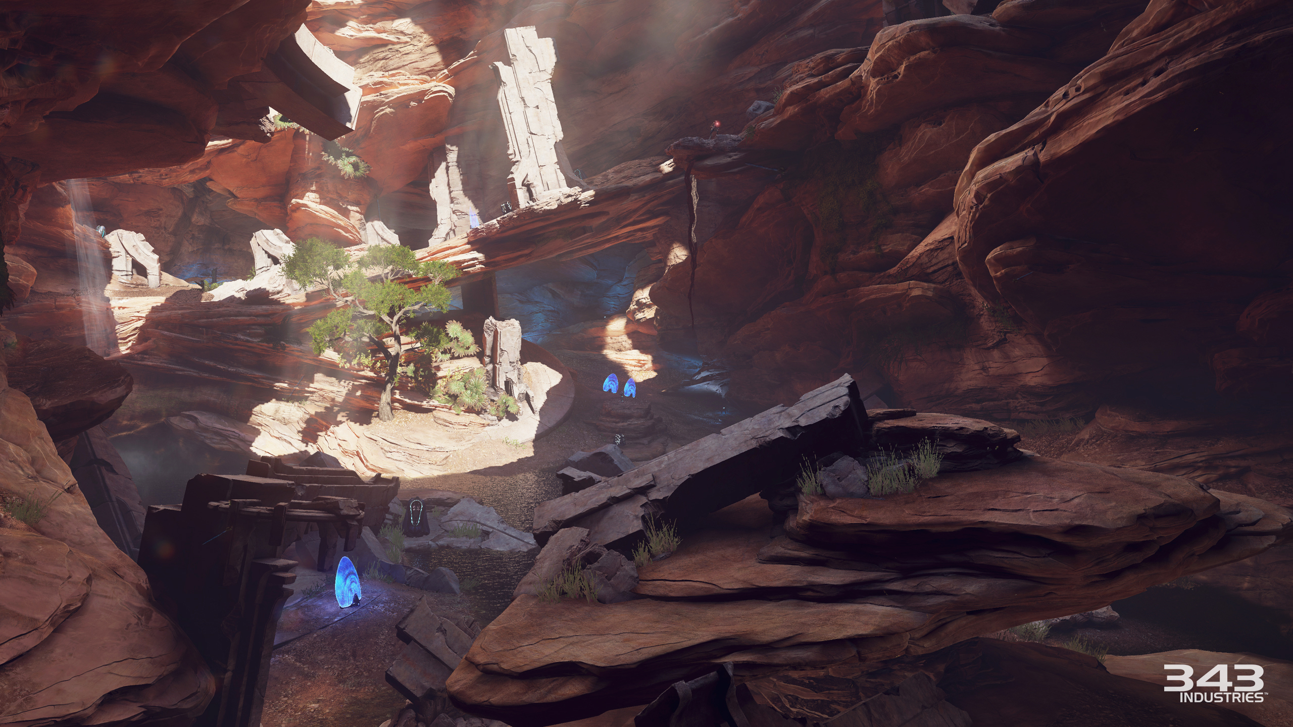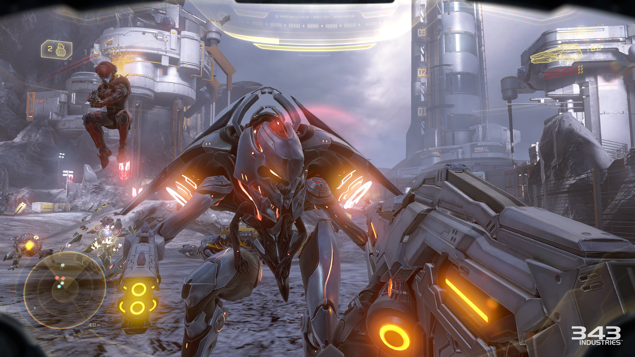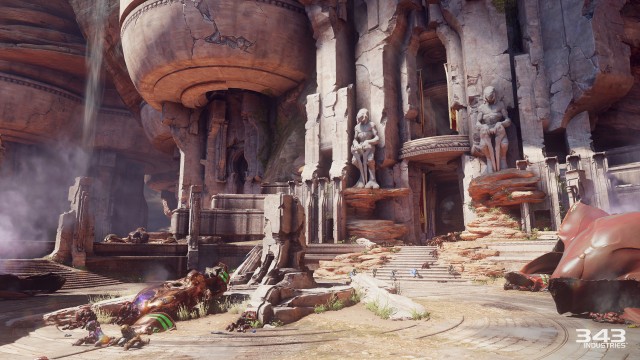 There is also some incredibly unique architecture in the game that we haven’t seen in past Halo titles. The most notable of which is easily the Elite (Sangheili) homeworld of Sanghelios. With massive stone structures and statues carved into cliff faces, it is the first time we’ve seen such intricate design from a species known for its brutality in combat.