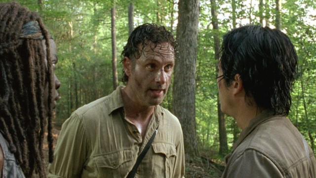 Yes, at long last, it seems like AMC has gotten bored with teasing Glenn’s death so many times, and has finally gone ahead and done it. Some people are speculating that Glenn may have somehow survived, but honestly, if Glenn somehow gets out of falling into an army of Walkers, that is going to be some grade-A bullshit, and a major cop-out on the part of the writers. Granted, the writers for this series have been guilty of cop-out deaths and cop-out survivals alike before, even last season, but I just don’t see Glenn getting out of this one. The camera even held on Glenn’s pained faces as torrents of blood and gore erupted below him. Maybe it was Nicholas’ body, but the writing is on the wall. Looks like Glenn is toast. His death was the only memorable moment in an episode that, while reasonably exciting, was also pretty forgettable in all other ways.