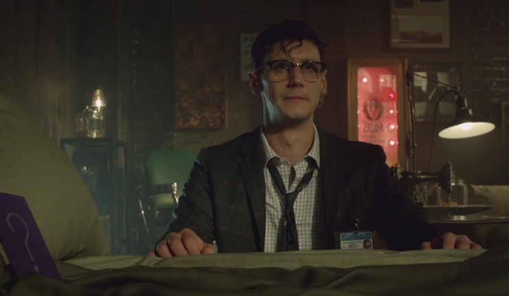 Likewise, even if Nygma’s arc still feels disconnected from everything else that’s going on, at least it’s starting to finally go somewhere very interesting, and very chilling. In the wake of his “accidental” (sort of) murder of Kristen Kringle last week, we see that Nygma’s alternate personality continues to torment him. This week, the ‘dark’ side of Nygma challenged him to solve a riddle related to where Kringle’s body was stashed, and this was one of the episode’s best subplots. Seeing Nygma hurry around the GCPD precinct, desperately scrounging up information, and finding a chilling trail of evidence and gore that is wisely left to the viewer’s imagination, is fantastically engaging. The same was true of Leslie walking into the medical examination room as Nygma had Kringle’s body out, which was apparently stashed in the most obvious place, as a way to play with Nygma’s better side.