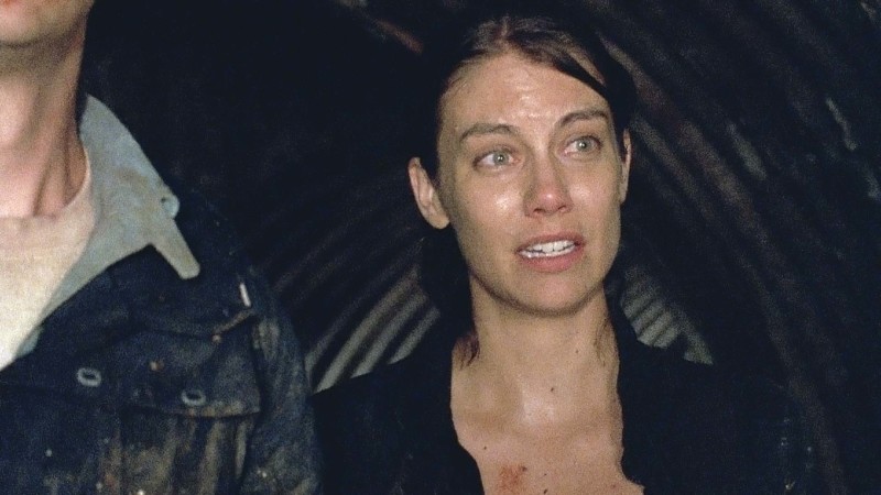 One of the more interesting plots in the episode involved Maggie being told by Michonne that Glenn and Nicholas are missing, and most likely dead. Unable to accept Glenn’s apparent death, Maggie decides to venture out, despite the community being surrounded by a legion of Walkers. Aaron forcibly tags along with her however, leading her into a sewer that will apparently lead the two outside of the wall. Maggie keeps insisting that Aaron go back, but after Aaron saves her from some hidden, sewage-obscured Walkers, the two press on, and encounter a wall.
