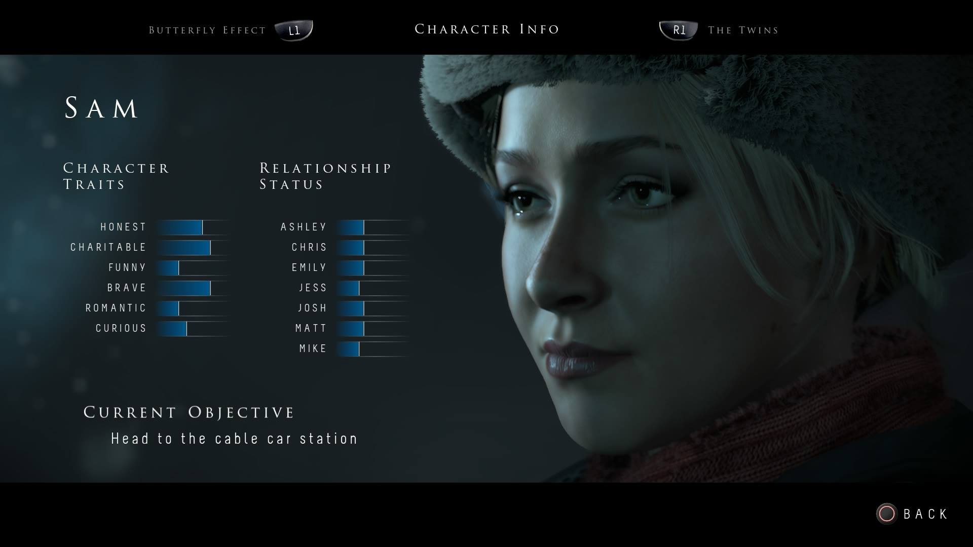 That said, this idea of being able to explore multiple paths of personality, action and habit between the characters, and seeing how the story plays out in response to these decisions, feels like something that innately invites repeat playthroughs, especially when you can pretty simply run through Until Dawn in about six to eight hours, assuming that you don’t stop to admire the scenery too much. It’s good that the game doesn’t overstay its welcome though, making it easier to go back to episodes of the story that you’ve already played through, and change the outcome of the story for curiosity and amusement, ultimately mastering how to save everyone, and how to doom everyone.