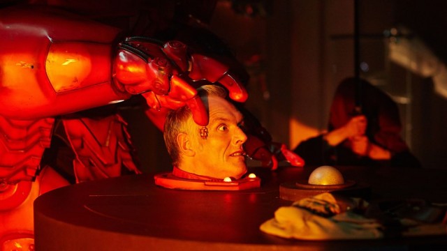 Fortunately, audiences likely won’t dwell on this, since most of the special is quite well-crafted. The main plot comes from The Doctor getting led to the human colony of Mendorax Dellora, in the year, 5343, by the TARDIS. After being stumbled upon by a kindly servant of a tyrannical king, played in a rather amusing role by Matt Lucas, The Doctor is mistaken for an esteemed specialty surgeon, and is led to the bedside of the dying tyrant ruler, who is apparently the new husband of River Song. River doesn’t recognize the Twelfth Doctor, who beseeches The Doctor to save her husband, much to The Doctor’s frustration. Things become even more sticky when it comes out that River is actually after an invaluable diamond that somehow ended up lodged in her royal husband’s skull, which the guy gets in earshot of as she reveals it. Since he’s a head atop an enormous, intimidating mech suit, that’s kind of a problem.