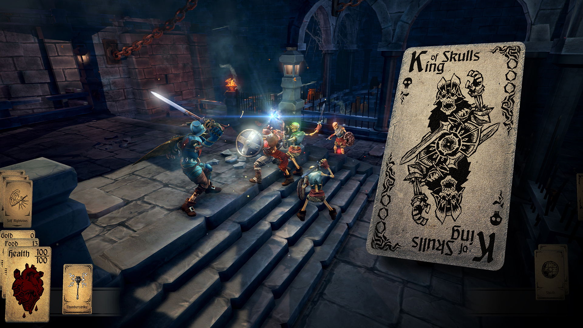 This element of chance can be thrilling, without completely taking away a sense of skill from the player. Given that each step through the cards that you take consumes 1 Food Card, and will eat at your health when you run out of Food Cards, resource management becomes a factor on your adventures, particularly since good or bad events can also drastically affect your Gold Cards, which are necessary to spend on better equipment, buying food, healing your wounds, or removing Curses. Carefully managing when to be charitable, when to wander, and when to stay focused on an objective, is a way that Hand of Fate avoids devolving into a simple roll of the fickle dice, giving the player some means to play it well, without making the experience too complex and unapproachable.
