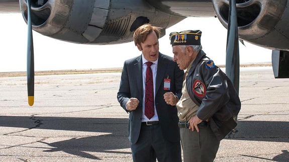 Jimmy meanwhile is up to his old shenanigans, in preparation to start his own practice. How will he do this? By shooting another commercial, of course! This provided another welcome dose of comic relief for the show in this episode, as Jimmy has one of his retired elderly clients (someone from Sandpiper Crossing, maybe?), pose as a military veteran who has been rendered paralyzed and mute from a stroke, when in reality, it’s just a guy that Jimmy helped get off of a public masturbation charge, who is perfectly capable of walking and speaking. Jimmy’s favourite film students also appear on hand to shoot the ad, and after sending the escorting soldier away for a water, the group has a very funny scene of attempting to make a commercial for Jimmy’s new practice, when no one seems to want to listen to direction. It then ends with a group of soldiers wanting a photo with the, “Veteran.” These fun little moments with Jimmy are great, and they’re more necessary than ever lately, with Better Call Saul veering noticeably further into dramatic territory over the past few episodes.