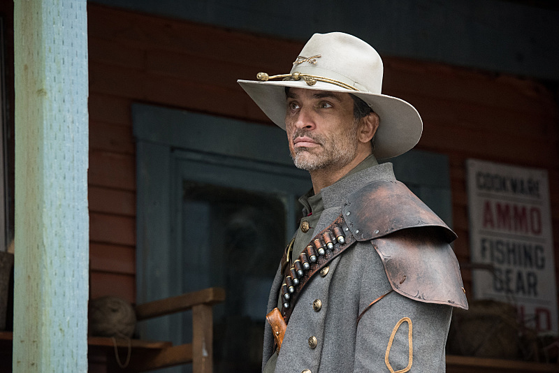 Yes, Jonah Hex joins the canon of The CW’s DC Television Universe this week, and he’s not that surprised to see time travelers showing up in his town. After breaking up a bar fight started by the team after Martin does a little too well at a card game, Hex steps in to quiet everyone down, then asks where he can find Rip Hunter. Turns out that the good captain has met Hex before in his prior travels, and the episode gives them a great history, even revealing that Rip’s Old West-style overcoat was actually a gift from Hex, and that Rip’s son, Jonas was named after Hex to boot.