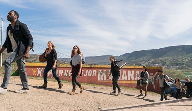 At last, everyone has reached Baja, barring one minor complication between Strand and the border guards, which results in a gunfight… That we don’t see, since the scene lingers on everyone hiding in the cargo hold. That’s pretty lame. Oh, and apparently said off-screen fight resulted in Luis getting shot and killed, before passing a coin on to Daniel, who just tosses it overboard, despite Luis wanting him to give the coin to his mother. That same creepy owl face on the coin is also seen later, suggesting some sort of sinister cult-like connection between the next batch of survivors that the group encounters. Oh yeah, it doesn’t take us long to meet Luis’ mother.