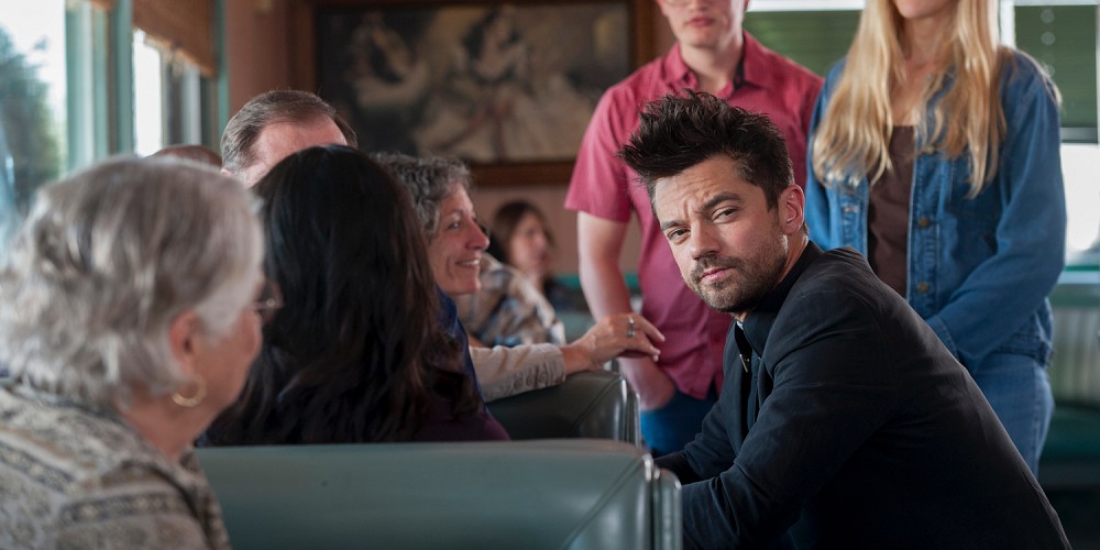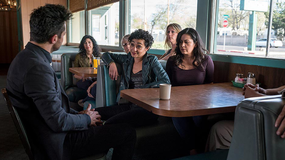 A big part of this episode was all about raising questions regarding Jesse’s abilities though, especially as DeBlanc and Fiore spend yet another episode being afraid of their heavenly telephone. Again, there were some amusing exchanges between these two angels, and it’s welcome to have them finally confront Jesse in a diner, and tell them that it’s not God Himself who dwells within the local preacher, but they spent yet another episode not even leaving their hotel room, beyond said diner scene. I guess there’s only so much you can do with two characters whose sole purpose is to find Jesse and convince him to let them cut him open with a chainsaw, but even so, it’s a shame that DeBlanc and Fiore aren’t more meaningfully interacting with the human world.