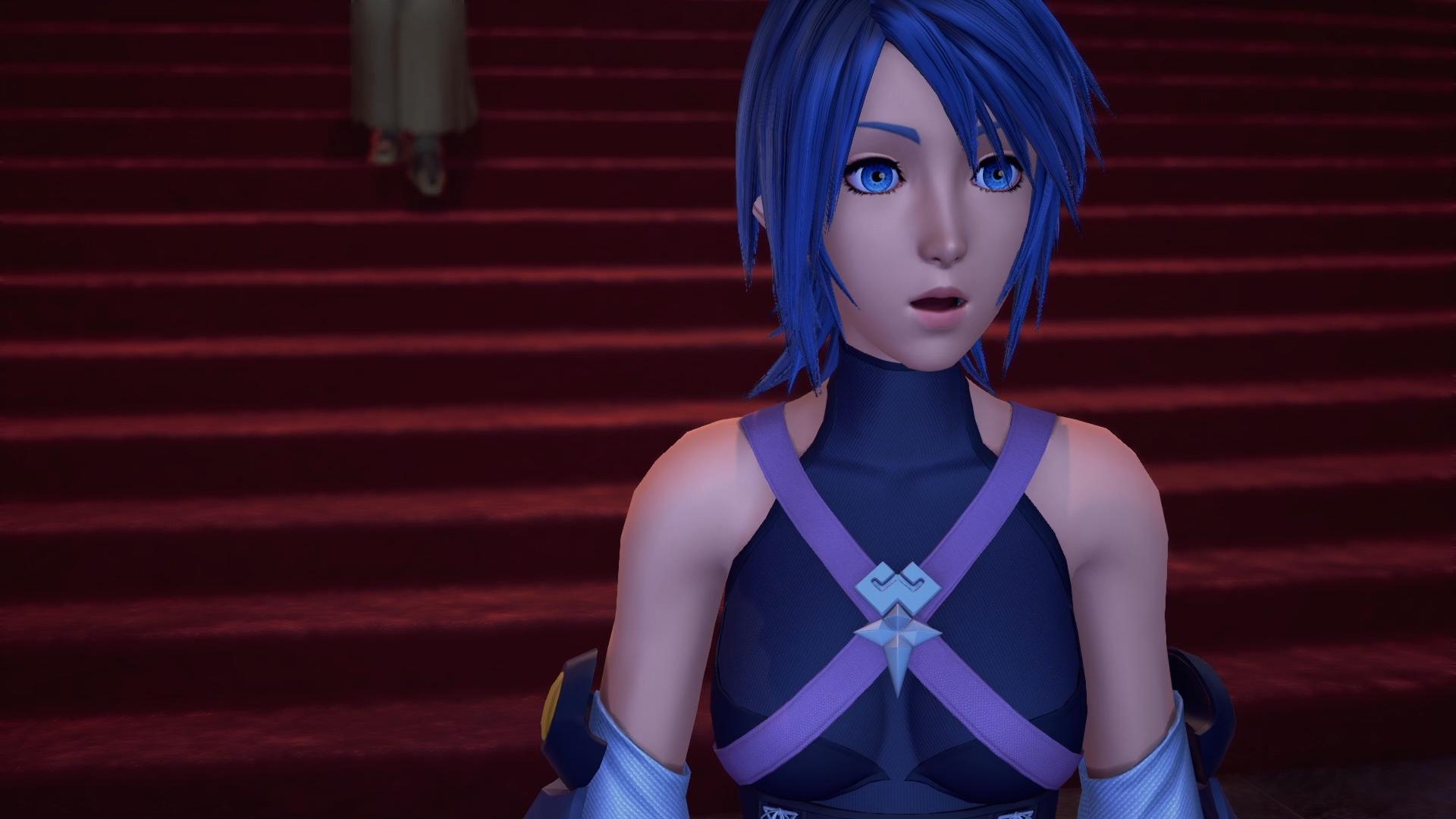 The only serious obstacle I encountered within the demo was a boss enemy at the end, a tentacle-like beast that was formed by a whole legion of regular Shadows, the most basic and iconic of Heartless enemies in the series. The boss had several HP bars to deplete, and would regularly bob in and out of the ground, often aggressively smacking, grabbing and tossing Aqua unexpectedly! It was a tricky enemy that required some wits and agility, and unlike the regular Heartless peons, you have to choose your attack opportunities carefully when engaging this foe. I did have to quickly heal Aqua a few times to avoid defeat, though fortunately, it was easy to keep her MP high, meaning that casting Curaga in a pinch to completely restore Aqua’s HP was never difficult. After an exciting few minutes, a final Spellweaver strike from Aqua destroyed the boss and had me on my way to the castle that I’d built a path to. After a story cutscene followed that I’d be remiss to spoil, this is where the demo concluded.