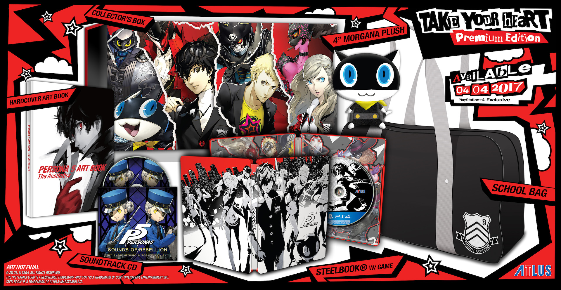 To help tide over fans, Atlus confirmed that the game will release in English-speaking territories with dual voiceover options, offering an optional Japanese voice track as free DLC for North American and European players, along with the default English voice track. They also revealed some updated art for Persona 5’s Collector’s Edition, dubbed the ‘Take Your Heart Premium Edition’, which you can check out below:
