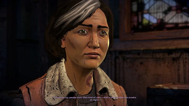 Also a bit frustrating is that the episode ends on something of a whimper, especially when you’re forced along the same approximate story path, regardless of whether you follow David’s orders or not. Even if you defy David at every turn and actively try to get out of dodge, the game will nonetheless force you back into the current conflict, which is annoying, since the first two episodes found more unique ways to mix up their scenarios, even if just a little. The true culprit behind the shadiness of the New Frontier is also a bit underwhelming, coming out of nowhere, and having the same tired motivations that most Walking Dead villains seem to consistently have, only being less outwardly honest about it this time. Perhaps the next two episodes will make this new antagonist a more interesting foe, but for now, they’re not all that compelling of an enemy.