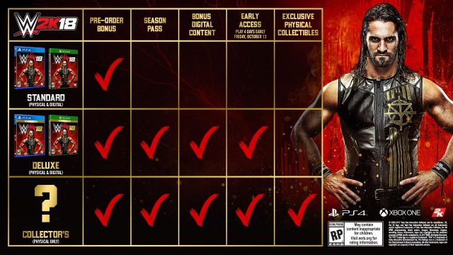 Three different versions of the upcoming wrestling game have been announced, although only two have been detailed at this point in time. Those are the regular and deluxe editions, the latter of which includes digital bonus content alongside the season pass and early access. A special, physical-0nly collector’s edition, has also been announced, though pricing and content details have yet to be revealed.