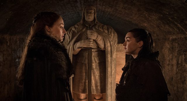 Speaking of dark and heavy, the doom and gloom still continued to flow pretty freely from Bran this week, who has completely given himself over to becoming the Three-Eyed Raven at this point. We’ve had some buildup to how Bran is being affected by his new divine station, but it reached a new height here, as Bran gives a thankless farewell to Meera, and doesn’t seem that interested in the fact that Arya has returned to Winterfell. Bran also shared another great callback scene with Littlefinger, referencing both the failed assassination attempt on Bran from way back at the start of this series, as well as Littlefinger’s not-so-subtle killing of Ros by essentially handing her over to Joffrey’s whims back in Season Three. Bran directly quoting Littlefinger’s claim around that incident, namely that, “Chaos is a ladder”, proved especially telling, seemingly indicating that Bran’s Three-Eyed Raven abilities make him completely aware of Littlefinger’s true agenda, which could be why Bran also handed the Valyrian Steel dagger that Littlefinger gives him off to Arya. I suppose that Bran is correct when he says it’s wasted on a cripple though, in any case.