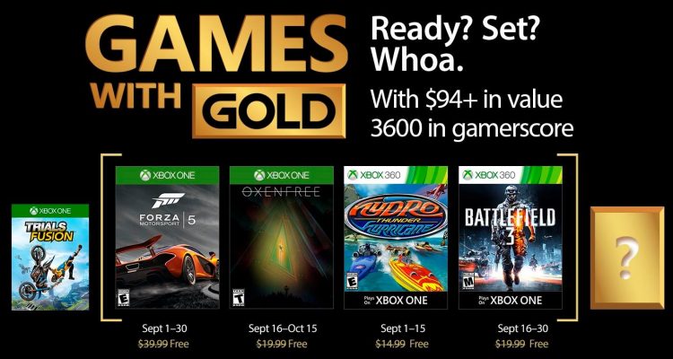 From September 1st to 30th, Xbox One owners will be able to download and speed through Forza Motorsport 5, with indie hit Oxenfree bringing up the rear. The latter title will be available starting on the 16th, and will remain free until the 15th of October.