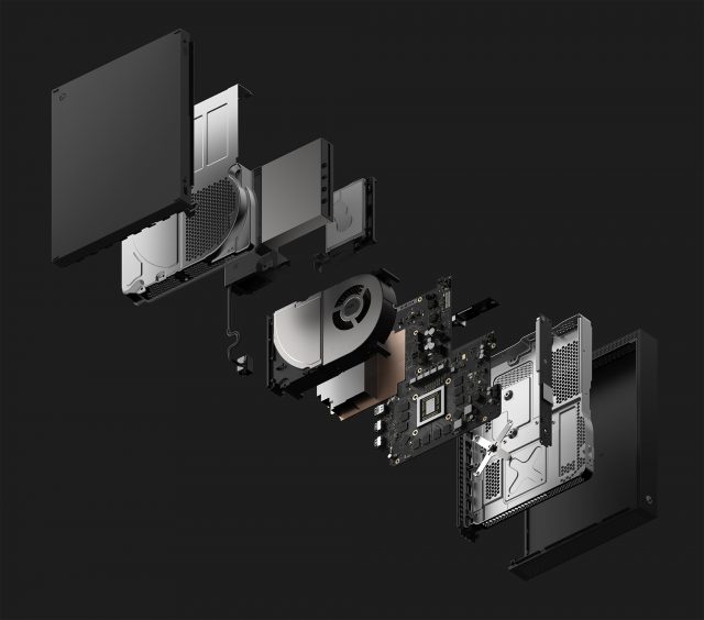 Gone is the fluff of previous console generations where loading a retail box up with a bunch of game images or stuffing it full of thin paper inserts showing off titles was the way manufacturers marketed first- and third-party titles. Even the packaging of Xbox One X is designed for the true, high-end gamer; here’s a shot of the console, a few words about it, and a photo of the processor inside it. Because you’re a nerd and putting a Halo logo on the back of the box isn’t going to do anything other than take away from our otherwise perfectly manicured retail package.