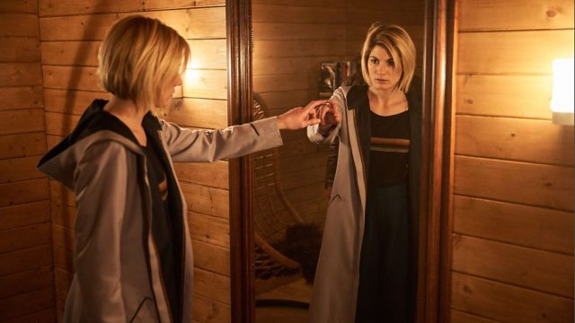 The Anti-Zone doesn’t ultimately get that much of an explanation, and nor does what’s on the other side, where Hanne’s father is actually hiding, but in this case, the lack of concrete explanation actually works in this episode’s favour. This is because Hanne’s father has somehow stumbled into an alternate reality space called the ‘Solitract’, a dimensional anomaly that apparently prevented our universe from properly forming at the dawn of time, before it was exiled to a different dimension. The Solitract is conscious and lonely, and it desires a companion, so it lured Hanne’s father, Erik into the mirror by impersonating his dead wife and Hanne’s dead mother, Trine. Since the Solitract is incompatible with real-world life force however, the presence of The Doctor and her companions quickly causes the reality to overload and start collapsing, which also comes at the inconvenient timing of Hanne and Ryan being trapped in the Anti-Zone, with flesh moths in hot pursuit!