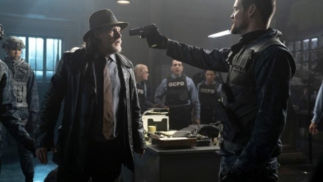 Yes, as it turns out, Lee has been in some unknown location in Gotham City this whole time, and never made it out before the bridges blew. Lee suddenly being threatened with execution after Dorrance locks most of the citizens, and Bullock, in the GCPD’s cells does create a solid sense of urgency, culminating in a fairly brutal duel between Gordon and Dorrance… Which mostly takes place off-screen at first. Yes, that was a weirdly lame way to execute this integral part of the heist, even if we do get to see a hilarious showcase of Nygma’s part of the plan instead, which is accidentally foiled by Bullock a bit early, go figure. Bruce finds minimal resistance while this is all going on, but after taking out a few Delta Force soldiers, with some help from Alfred, Bruce does manage to successfully transmit the evidence to the mainland, just in time for Gordon to learn that the government was indeed on the verge of sending relief to Gotham City once they learned about Haven. The reason why Haven was destroyed is because Walker doesn’t want relief to come to Gotham City, on account of whatever her agenda for the city is.