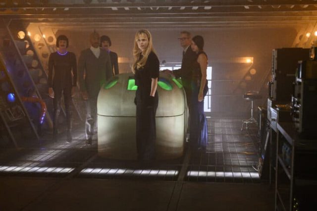 Meanwhile, over at Division 3, the rest of the show’s leads debate what to do about having Switch in their possession. After Cary successfully puts Switch under, placing her in a tank that will both shield her from psychic probing, and prevent her from manipulating time any further, the Division 3 members decide that the best way to keep Switch away from David is to fly the airship into space, which is outside of David’s teleportation range. Yes, apparently, Division 3’s airship is outfitted for low-orbit space travel. That’s handy. Regardless, Farouk doesn’t end up playing ball, calling David to the airship anyway with the help of his own powers, after he disagrees with Division 3’s strategy of running from David, rather than fighting him directly.