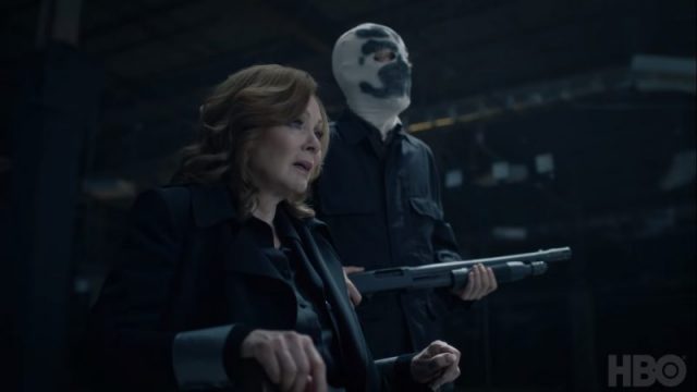 This is the point where the many story elements of HBO’s Watchmen series finally fully come together. This begins with Angela going to confront the Seventh Kavalry, just in time to witness Joe Keene Jr. preparing to transform himself into Dr. Manhattan. Angela tries and fails to warn Keene that Trieu is likely tricking the Seventh Kavalry as well, ultimately allowing them to steal her batteries and run their improvised Dr. Manhattan machine, something that Keene ultimately laughs off. It truly looks like the Seventh Kavalry has won here too, successfully stealing Dr. Manhattan’s energy with the aid of Trieu’s technology, and using it to power Keene’s transformation!… Which ends up being interrupted by Trieu and Bian, right on schedule, at which point, Trieu announces to the Seventh Kavalry that they’ve all been tricked.