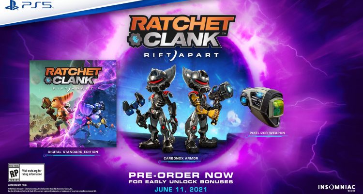Ratchet & Clank: Rift Apart is aiming for a June 11th release. Preorders are now open on the PlayStation Store, with those who put money down early receiving early access to the Pixelizer weapon and Carbonox Armor.