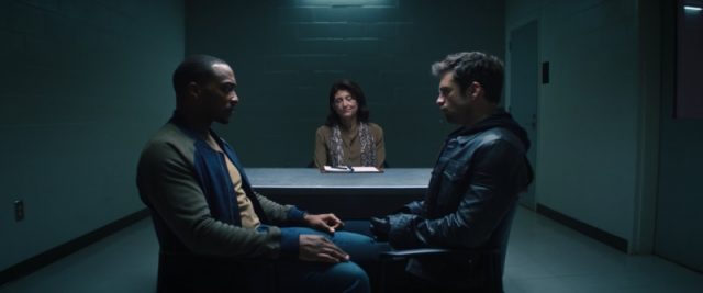 Moments like this exemplify The Falcon and the Winter Soldier as being the most chillingly grounded and thought-provoking that the MCU has dared to be since 2014’s Captain America: The Winter Soldier. You really have to respect showrunners, Malcolm Spellman and Kari Skolgard for once again trying to deepen the themes and commentary at play behind a more starkly humanized MCU storyline! In fact, if anything, Spellman and Skolgard are almost doing too good of a job raising questions and exploring ambitious themes in the writing and direction for The Falcon and the Winter Soldier so far, to the point where it currently feels distracting when the series suddenly tries to be a buddy comedy. For all of its great narrative ideas, The Falcon and the Winter Soldier hasn’t yet perfected its overall tone. This second episode may finally have Sam and Bucky interacting with each other at last, but it also fails to smoothly move between sobering commentary and faux-macho comedy, making its comedic moments between Sam and Bucky, from uncomfortable therapy sessions to a weirdly homoerotic tension that’s treated as a strange running gag, mesh poorly with the rest of the show’s storytelling at this point.