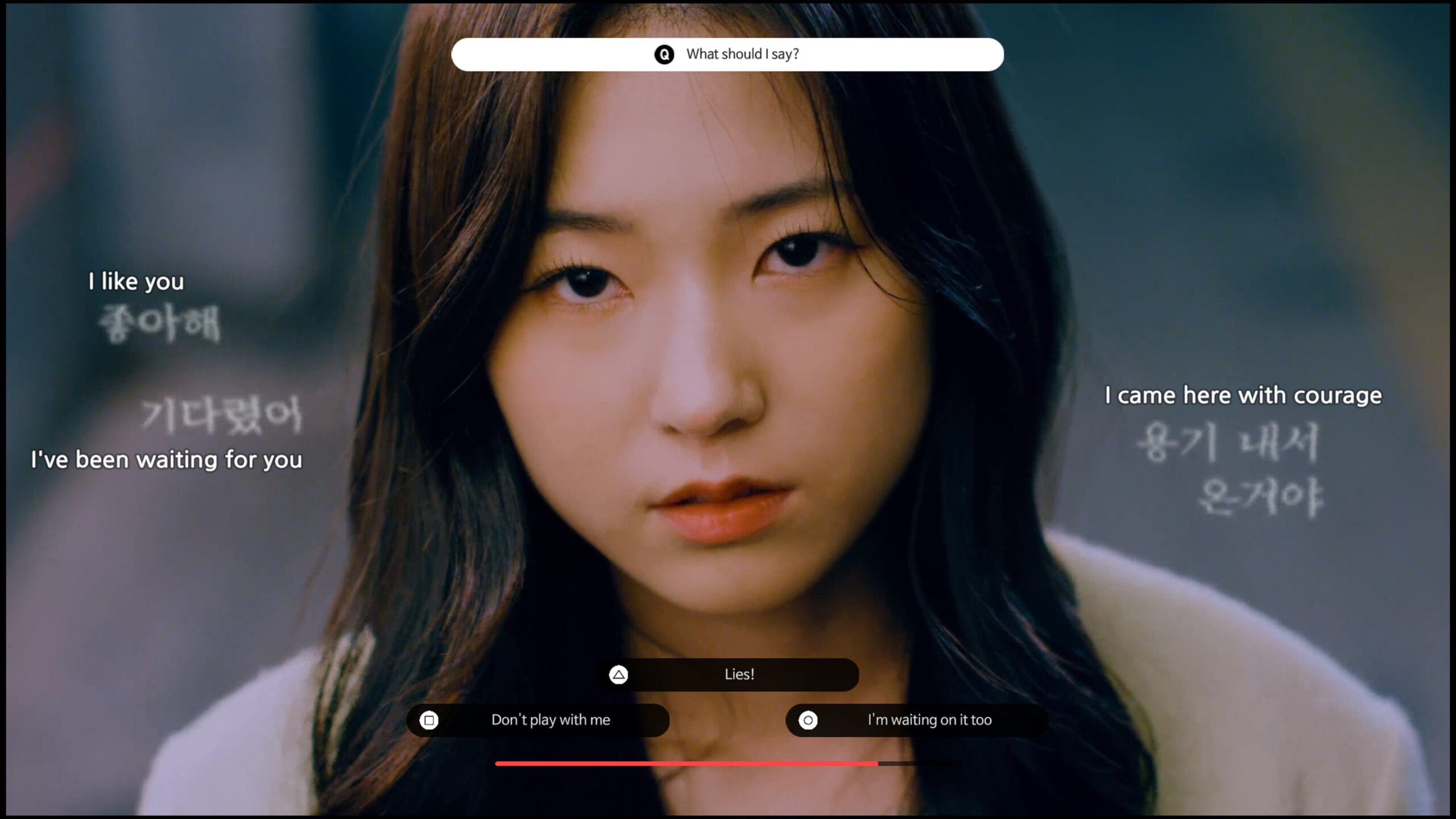 One thing that Love too Easily does that sets it apart from other FMV games is that it makes you complete mini-games at certain points. For instance, I first had to move a mouse cursor around the main character’s room to look for a cellphone, and could highlight lots of things. Highlighting them all unlocked a trophy. Then, not long after, I was tasked with using the controller and directional prompts to apply a chosen style of makeup, choose a hairstyle and pick an outfit (from three options each), before heading to school. Yeonwoo didn’t like what I selected, but it didn’t seem to matter anyways, because she didn’t look anything like what I’d chosen in the filmed segments that followed. So what was the point?