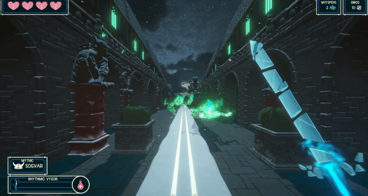 “Jump, dodge, and fight to the rhythm of the gods in this thrilling music-action game on skis. As the protagonist, Skaii, players begin their journey gliding through a beautiful snow-covered forest to the beat of an ethereal pop soundtrack, an Aurora shimmering overhead. Soon, however, the path diverges, and players must navigate increasing obstacles and fight off menacing minions as they delve deeper into the darkness that has befallen the land of Norwyn. As Skaii conquers each new trail, players unlock new abilities, new divine companions, and 28 tracks of irresistible original music.”
